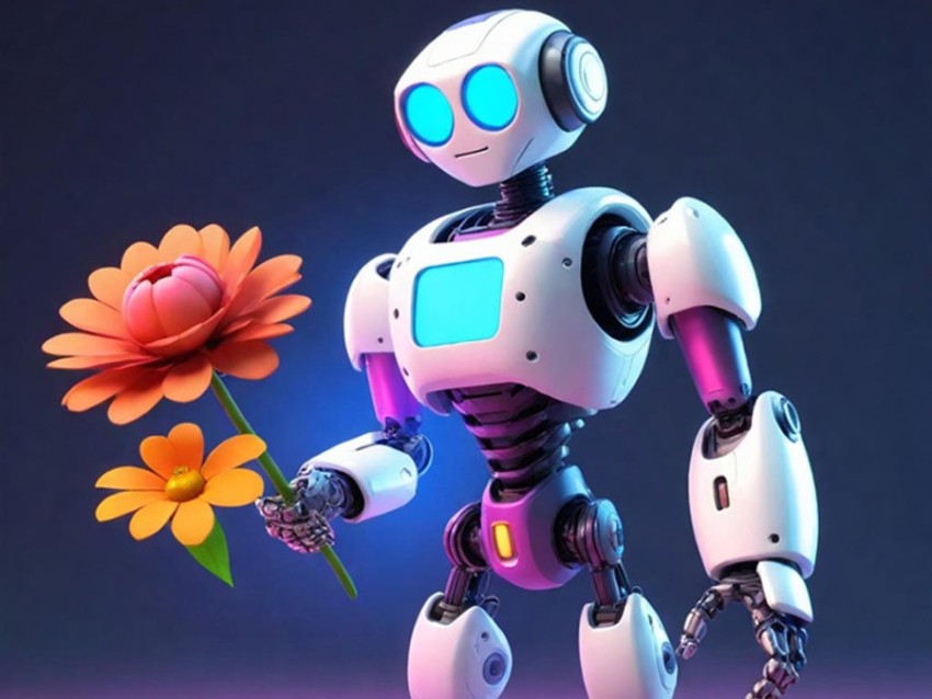 robot holding a flower 3d model ai generated ai images free ai images 3d rendering images 3d robot images creative images robot with flower images propose robot holding flowers flowers images free images free pictures stock images stock photos background images isolated images technology roses images render robotic lighted giving offering robot beautifulSimilar Photos