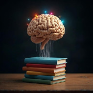 Stack of Books and Brain Floating Knowledge Concept AI Image