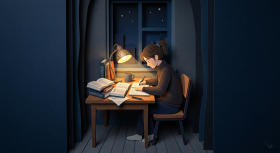 Student Studying Alone Under Small Light