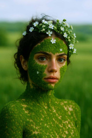 the beauty queen wearing crown moss crown of moss moss images portrait natural makeup beautiful woman skin flowers nature makeup creative beauty care skin care ai images ai wallpapers green background background ai backgroundSimilar Photos