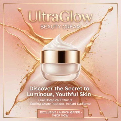 UltraGlow Beauty Cream Promotional Banner Design Template for Skincare Marketing
