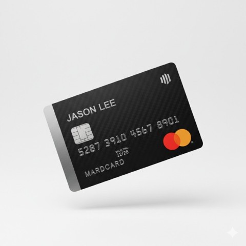 Vertical Black Credit Card Floating on White Background
