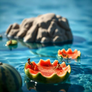 ai image ai generated images watermelon floating water little people relaxing watermelons floating watermelon floating photos watermelon images juice watermelon floating pictures blue background free photos ai photos wallpapers free images ai background background imagesSimilar Photos