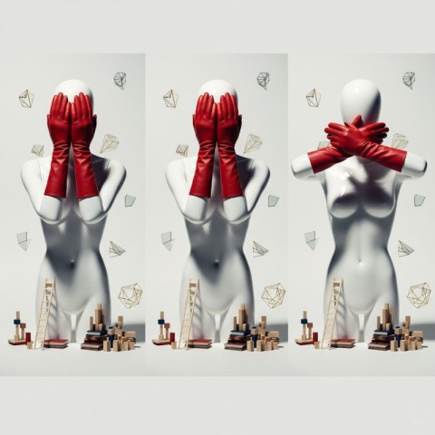 minimal concept art image white mannequin red gloves concept mannequin covering eyes surreal concept art minimal art photography abstract mannequin image modern creative concept fashion mannequin art symbolic visual concept contemporary art backgroundmarin