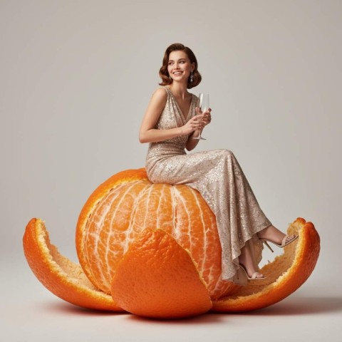 young woman sitting on orange fruit woman having drink refreshing beverage creative concept art surreal photography fruit concept summer refreshment vibrant orange theme lifestyle illustration artistic portrait imaginative scene modern visual art fashion style model girlSimilar Photos