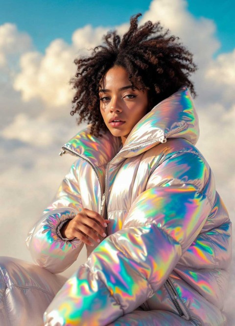holographic dress woman young woman young woman jacket holographic puffer jacket woman puffer jacket pictures ai generated jacket beauty model cold weather beauty fall illustration fashion style fashion model images free fashion images windbreaker images influencer images portrait woman nature images ai hair style hair woman person girl cute girl adult woman clods skySimilar Photos