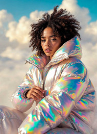 Young Woman with a Silver and Holographic Puffer Jacket