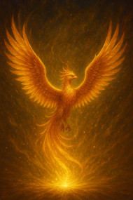 golden phoenix flying in the sky feathers glowing mythic energy golden lights luck abundance fantasy spiritual background animal background godSimilar Photos