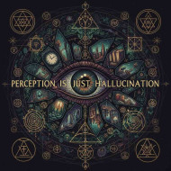 AI Prompt: Dark poetic metaphorical intrinsic psychological middle age literature illustration of de quote: perception is just hallucination. surrounded by intense beautiful trippy ancient magic symbols fractals and abstract forms in dmt. 2026 color grade aesthetic.