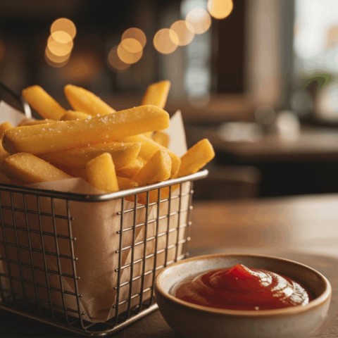 French Fries with Ketchup On Table