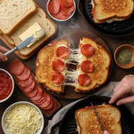 pizza grilled cheese melts recipe scene hot pizza dilicious pizza complete pizza crispy golden toasted bread melted mozzarella pepperoni slices marinara sauce cheese pizza steam ingredients sandwich sliced bread butter garlic spreading butter skillet melt food images pizza background dinner fast food table food background instagram banner facebook banner social media bannerSimilar Photos