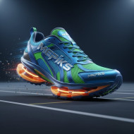 Ai Prompt: Create a running shoe that can be used in a commercial. it looks like its about to sprint of the screen. the logo on the shoe is a text that says "Mepiks"