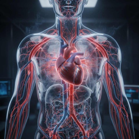 AI Prompt: A close-up shot of a human chest with completely transparent glass-like skin. Inside, a realistic human heart is visible and beating. Bioluminescent red and blue veins are visible. Hyper-realistic, 8k resolution, cinematic lighting, medical anatomy art style, mystery atmosphere.