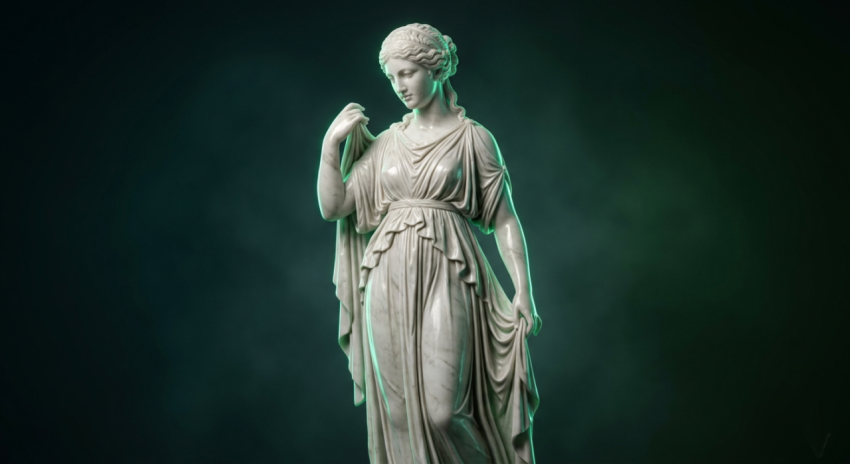 Hyper Realistic Marble Goddess Statue with Cinematic Lighting