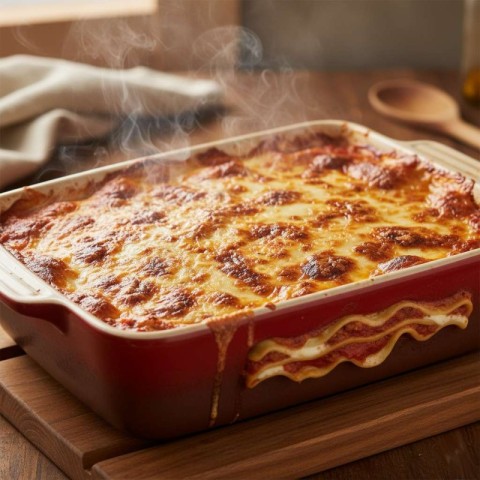 Freshly Baked Lasagna with Golden Melted Cheese and Crispy Browned Edges