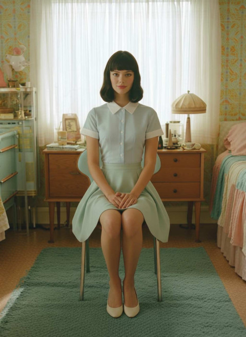 Beautiful Girl Sitting on Chair Looking on Camera AI Image