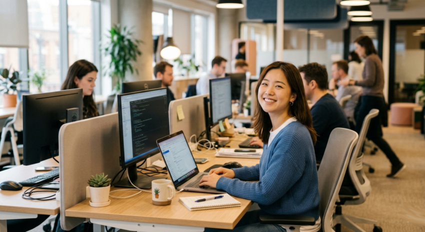 Peaceful Slow Living Banner with Cozy Workspace and Soft Ambient Music Aesthetic