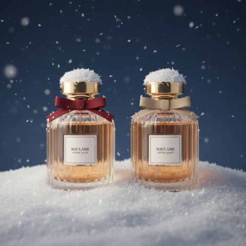 Winter Perfume Bottle Product Promotion Banner Template for Luxury Fragrance Marketing