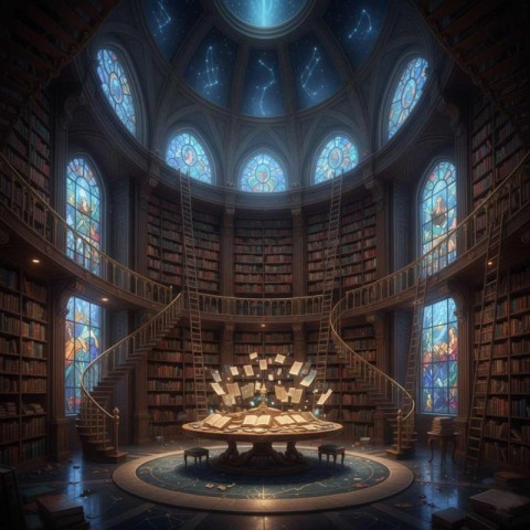 Grand Library with Floor to Ceiling Bookshelves