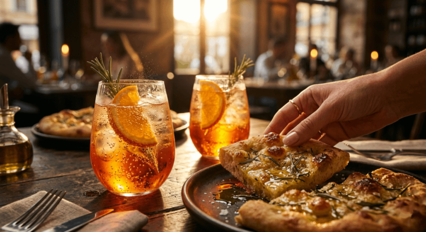 Aperol Spritz Cocktails with Fresh Focaccia
