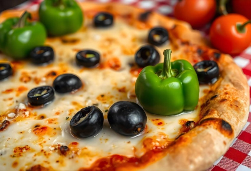 Delicious Butter Pizza with Capsicum and Black Olives AI Image