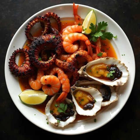 Seafood Shrimp Oysters Sprigs of Fresh Parsley AI Image