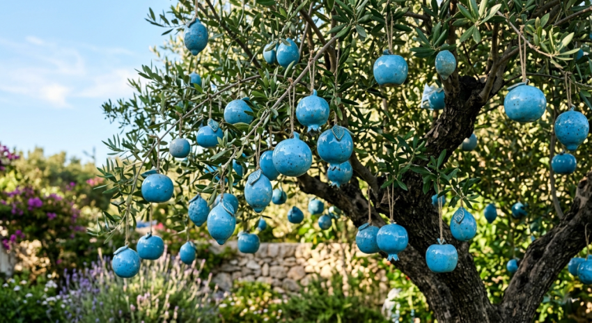 Sky Blue Ceramic Fruits on Tree
