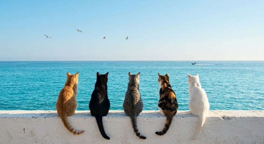 Five Cats Watching the Sea