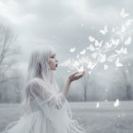 Girl with White Hair Releasing White Butterflies from Her Hand