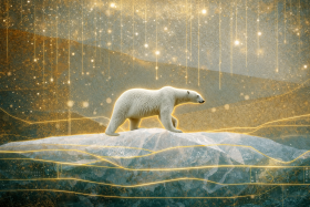 luxury digital art with glowing aura polar bear artwork golden outline bear iceberg illustration glowing aura art luxury digital art gold and silver background wildlife illustration modern digital painting high resolution artwork fantasy nature art arctic scene design elegant animal art mixed media illustration premium aesthetic designClara
