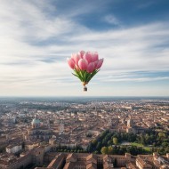 dreamy floral fantasy illustration pink flower hot air balloon floral hot air balloon art dreamy sky illustration fantasy balloon design romantic floral artwork spring theme background surreal sky scene floating flower balloon stastel aesthetic design whimsical nature illustration city city sky viewSimilar Photos