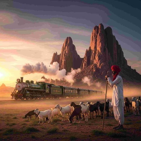rajasthan desert train vintage indian steam train thar desert railway heritage steam locomotive india rajasthan railway photography retro indian train journey desert landscape india classic steam engine rajasthan indian railway heritage nostalgic travel indian desert image mountains rajasthan desert vintage indian steam train chugs steam billowing golden sky desert background desert landscape goatsSimilar Photos