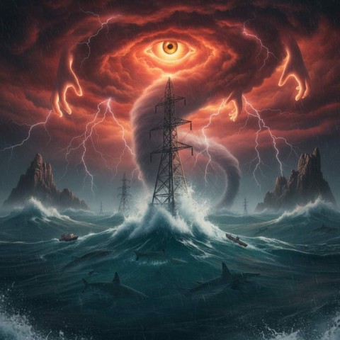 surreal artwork ocean massive towering waves electricity transmission tower raging ocean ships sharks sky clouds storm storm clouds eye lighting surreal ocean artwork massive towering waves fantasy seascape art dreamlike ocean scene abstract ocean waves digital surreal art dramatic sea landscape conceptual marine art ocean fantasy illustration modern surreal paintingSimilar Photos