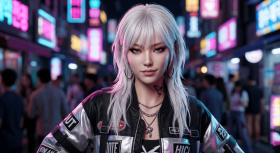 streetwear mv aesthetic close up cute girl 3d rendered girl kpop style character white hair girl 3d streetwear fashion girl kpop mv aesthetic clean 3d portrait realistic 3d character modern digital art korean pop style visuals closeup character render trendy street fashion idol inspired look high detail 3d render cinematic character design virtual idol concept fashion girl night streetsAparnaGoush