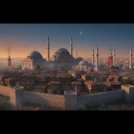 Ottoman Empire City Skyline with Traditional Wooden Houses
