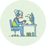 Grandmother Playing Video Game at Desk