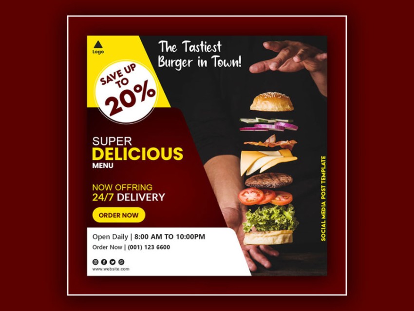 delicious burger social media post banner template food menu chicken banner restaurant post food sale restaurant promotion instagram discount healthy food delicious burger banner design burger king post design media banner vector images ads design modern breakfast tomato graphic realistic burger images background brochure layout special feed advertising hamburger marketing lunch fast foodSimilar Photos