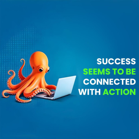 3d Cartoon Octopus Working on Laptop Concept Banner