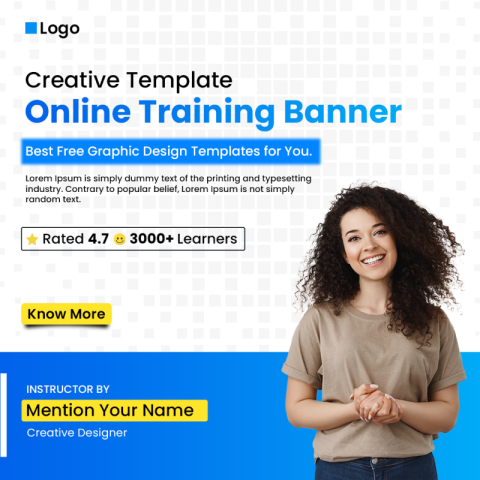 We think this online learning promotion instagram post design template that you see here will be very useful for those who are looking for online education banners design, now online learning courses are very popular, you want to make your digital learning courses known to online users or you can make your courses visible online. If you want to promote on social media, this video courses banner is great. You can change colors, font, images, background according to your brand, we have done this in photoshop, you can take it here for free and change it as you want, there are many more such designs on our website.