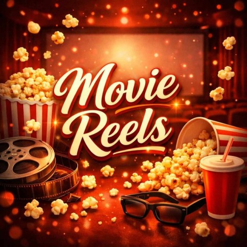 Movie Reels Cinema Banner Design Template with Popcorn and Red Glow