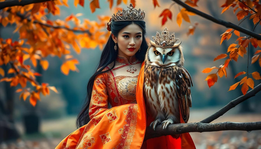 A Queen Sitting on a Branch with an owl AI Generated Image