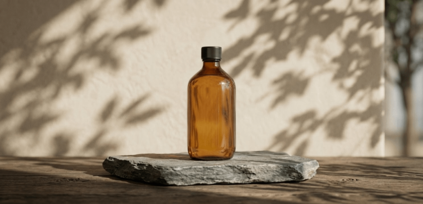 Minimalist Amber Glass Bottle Product Scene