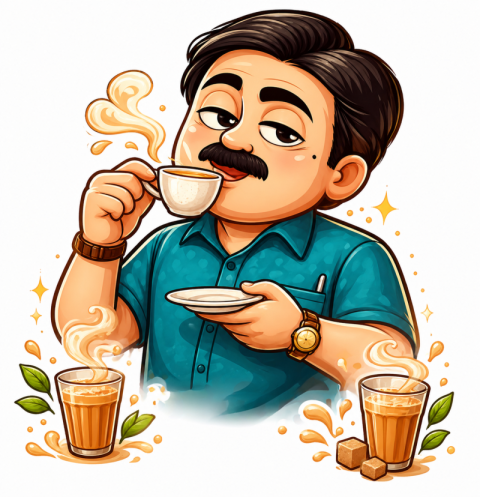 Cartoon Man Enjoying Hot Tea