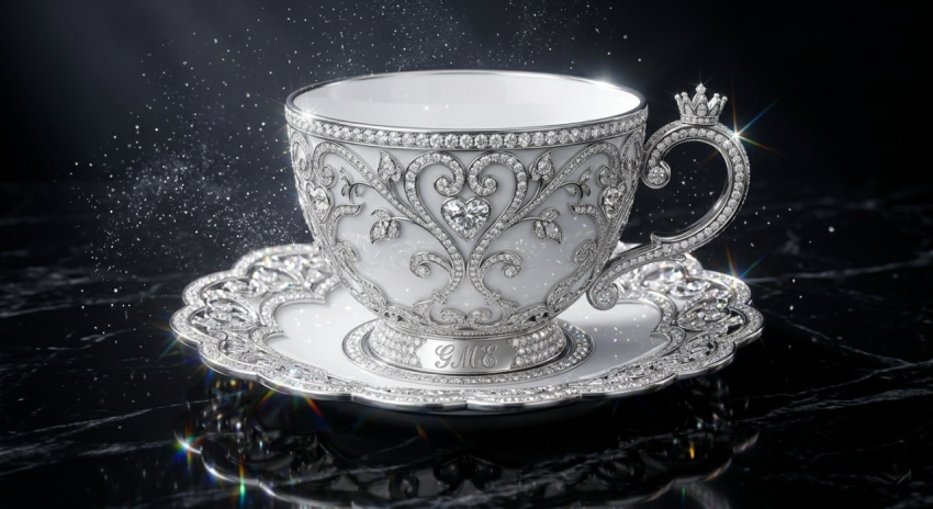 Ultra Luxury Diamond Jeweled Teacup in Porcelain and Platinum