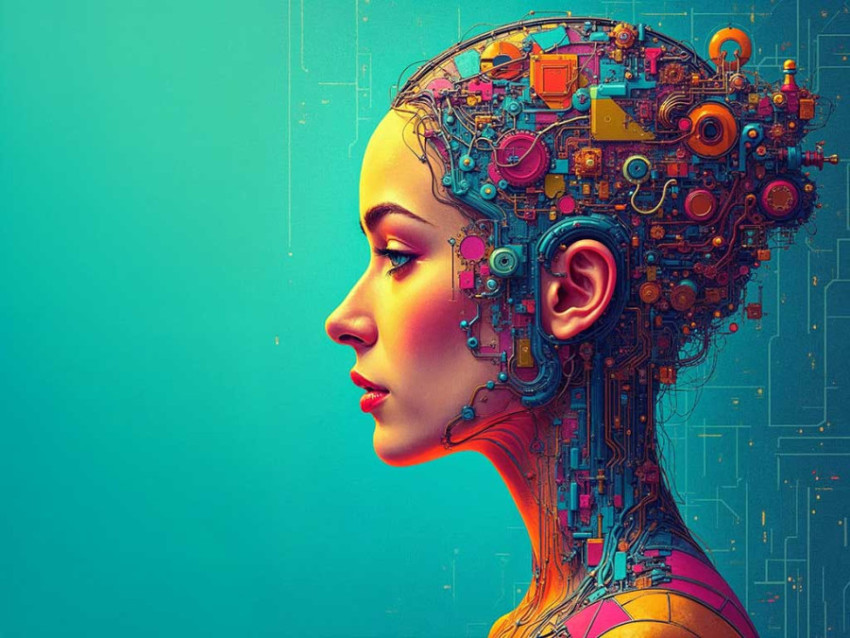 Woman Face Robotic Aesthetic Creation Full of Colors AI Image