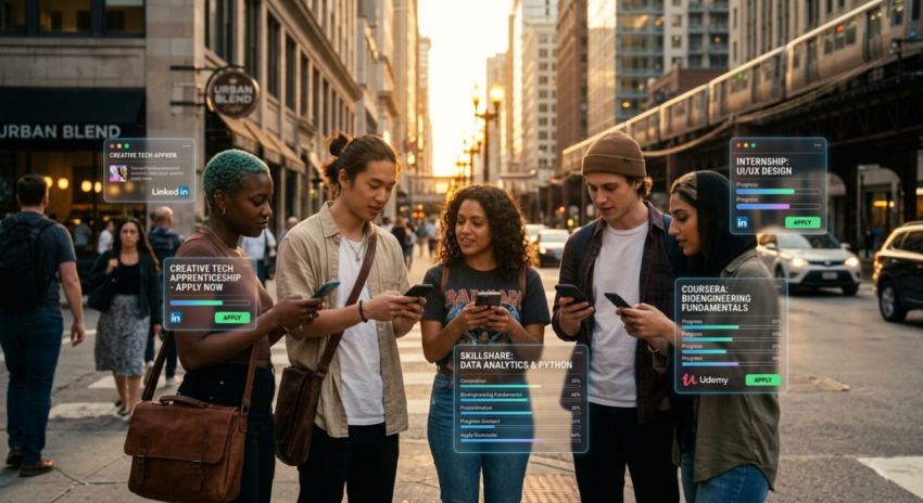 3D Illustration of Man Wearing Social Media Glasses with Facebook Instagram