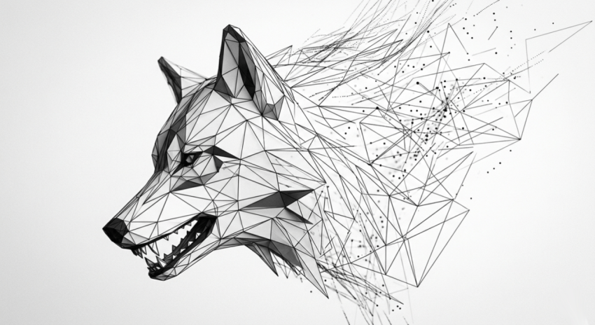 Low Poly Geometric Wolf Wireframe Animation on Pure White Background