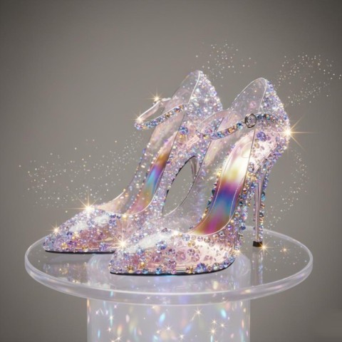 Magical Healing Crystals Sparkling on Stunning High Heels Fantasy Concept
