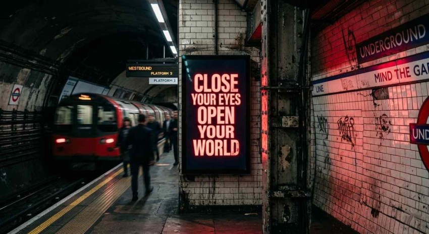 Glowing Neon Billboard in Subway Station by Kevins