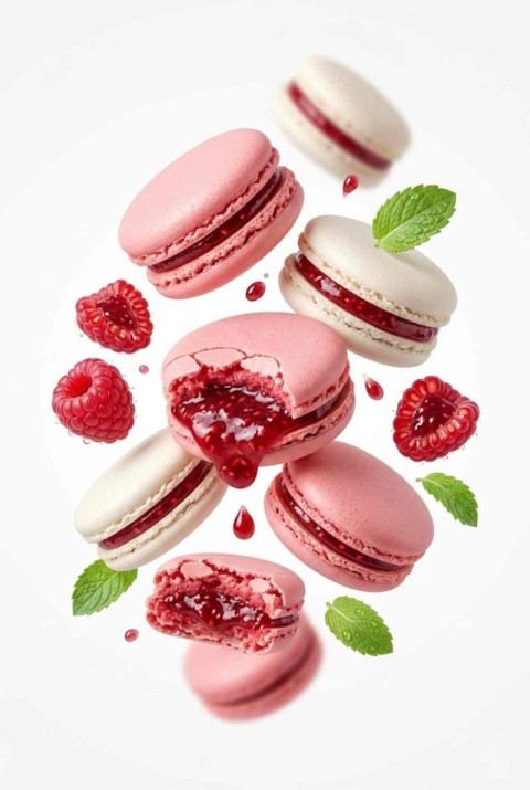 Floating Pink Raspberry Macarons AI Illustration by killisdesigns